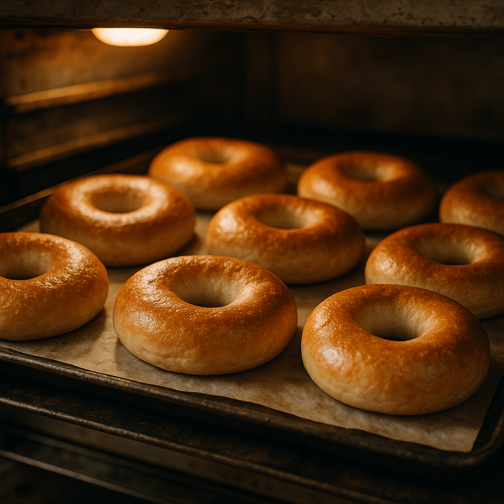 11- Transfer the bagels to a parchment lined backing sheet or place them directly on the baking steel or stone and bake for 18-20 minutes. Remove the bagels promptly and cool on a wire rack.Notes-
